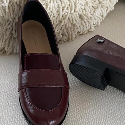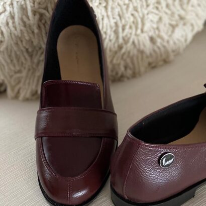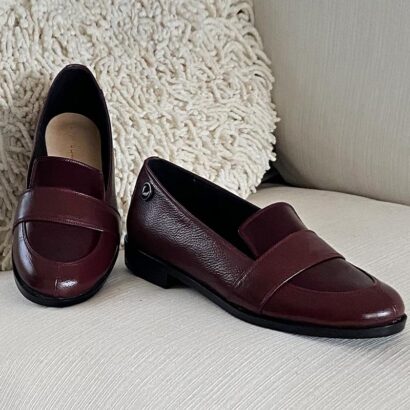Mocasín clásico cuero floater bordo con vincha al tono en cuero alto brillo.