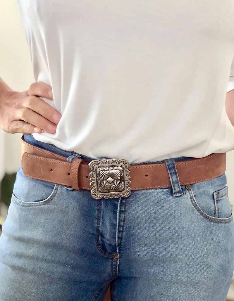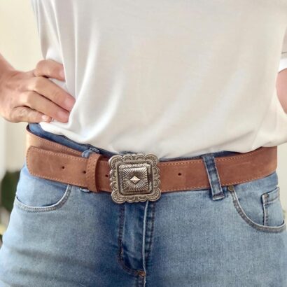 Cinturón de cuero vacuno color suela.