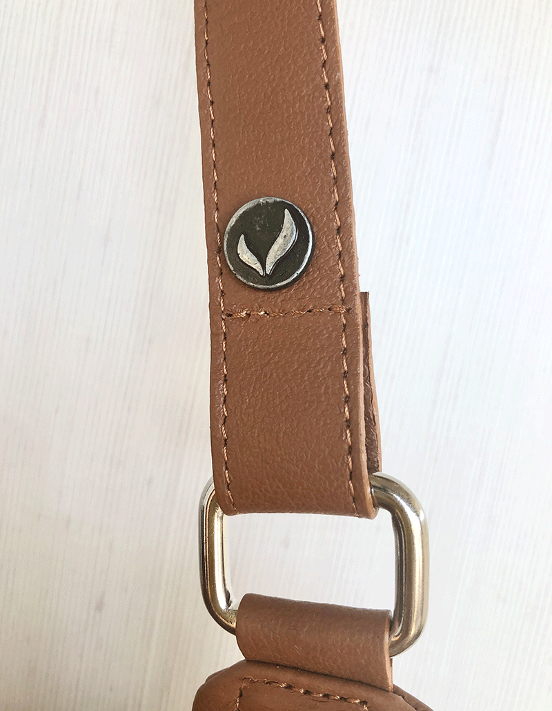 La tira es de cuero vacuno regulable para mayor comodidad, y también viene con una manija de agarre.