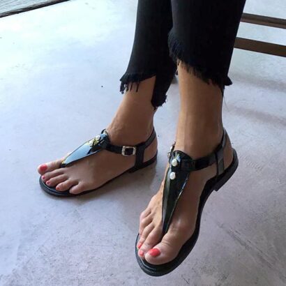 Ojota en cuero charol negro.
