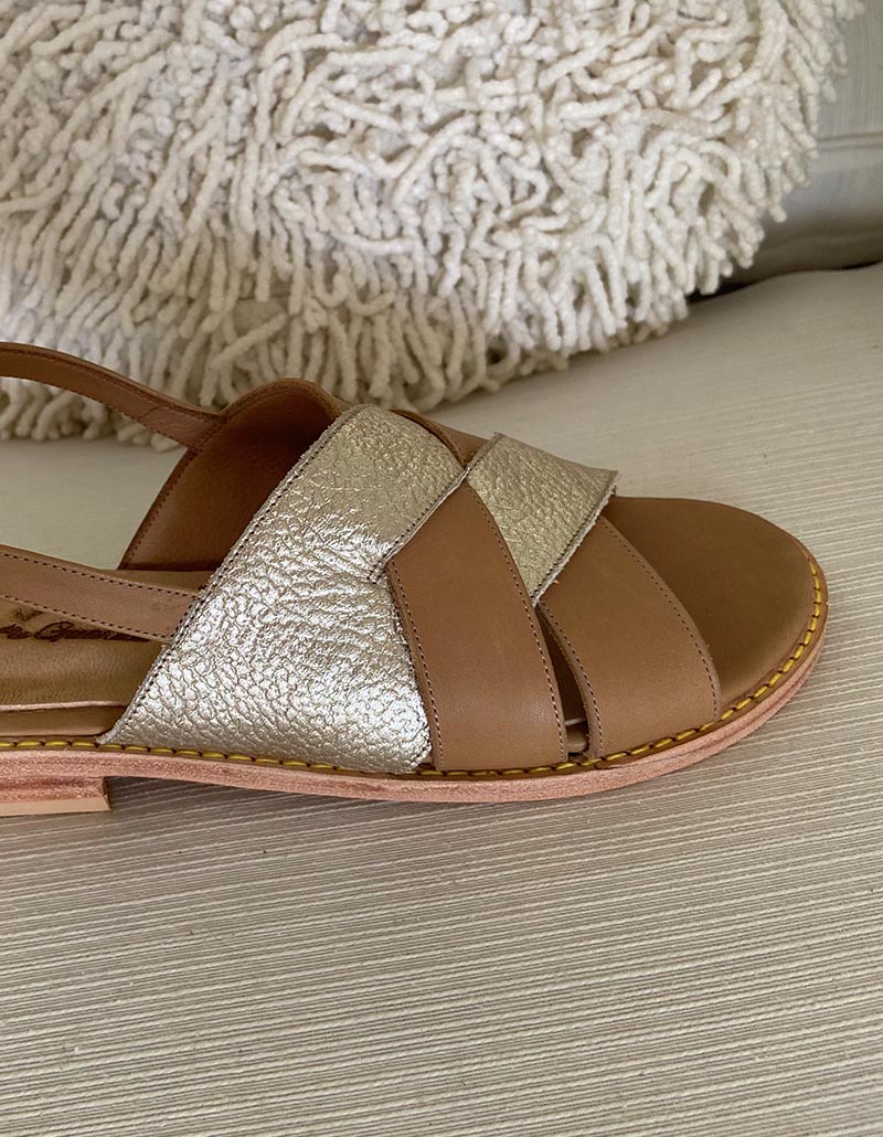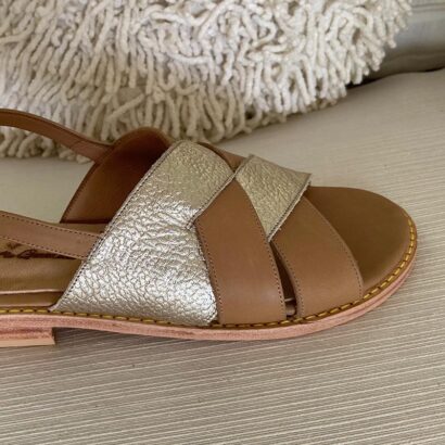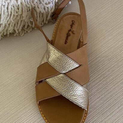 Sandalia combinada cuero suela y floater platino.